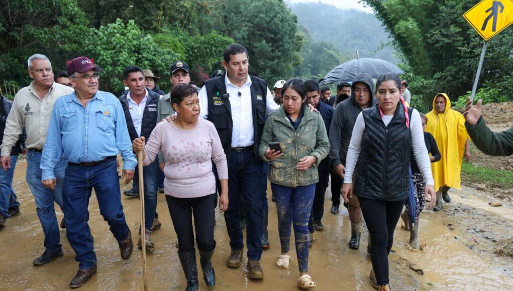 (personas en azotea); derrumbe en puente de Tacuilotepec; sin luz/Internet.
