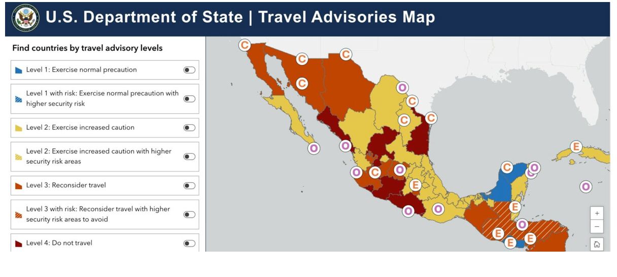 El gobierno del Presidente Donald Trump emitió una alerta de viaje para 30 estados de la República Mexicana por la inseguridad. El Departamento de Estado califico en cuatro niveles la alerta de riesgo de viaje: