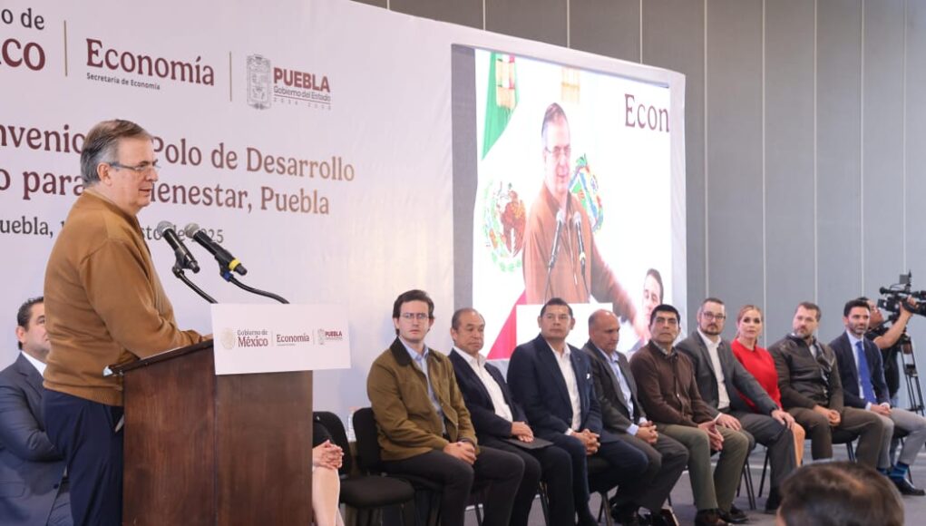 El secretario de Economía del Gobierno de México, Marcelo Ebrard y el gobernador de Puebla, Alejandro Armenta, encabezaron la firma de Convenio del Polo de Desarrollo Económico para el Bienestar «Capital de la Tecnología y la Sostenibilidad», a través del cual se incentivará la inversión y se protegerá a empresarios locales y nacionales, como lo establece la política del gobierno de la presidenta Claudia Sheinbaum.