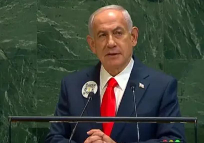 Por su parte Netanyahu en su discurso pronunció que «reconocer a Palestina es una locura» y mostrando un mapa dijo «Este mapa muestra la maldición del eje terrorista de Irán», negando la hambruna en Gaza.
