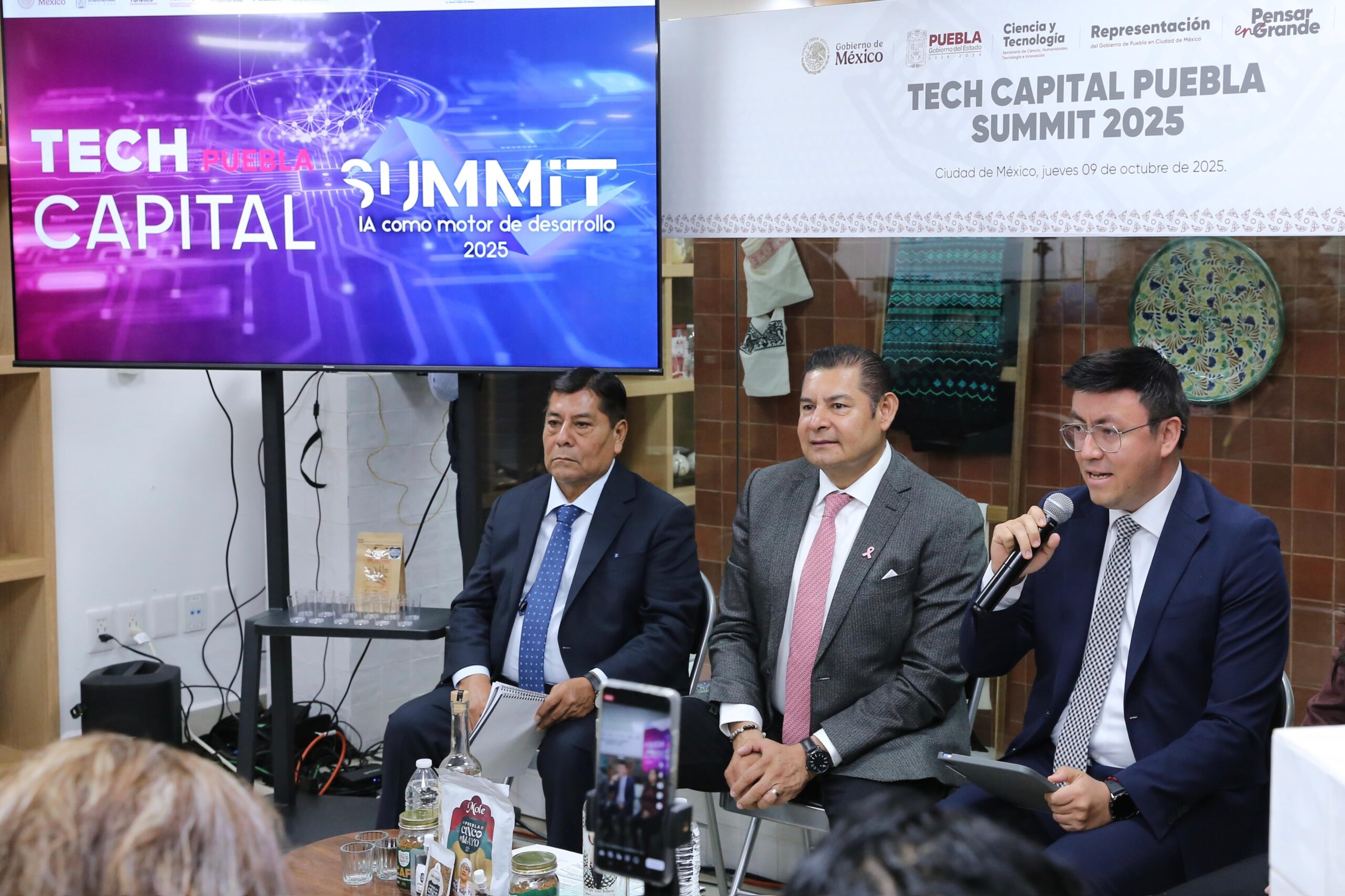 En conferencia de prensa con medios nacionales en la Casa de Representación del gobierno estatal, el mandatario detalló que el “Tech Capital Summit 2025” se desarrollará del 15 al 17 de octubre en el Centro Expositor. Señaló que los países que invierten en esta materia se convierten en líderes del mundo. Por ello, la entidad poblana participa en el gran reto de la presidenta de México para impulsar la transformación desde la soberanía tecnológica. “Es importante utilizar la tecnología en el desarrollo inclusivo del campo, la industria y en las áreas del conocimiento”, afirmó.